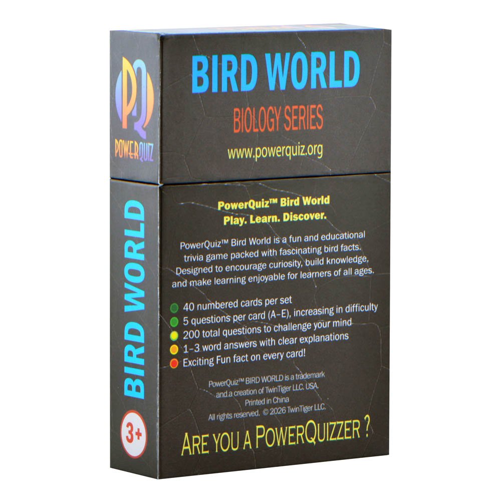 POWERQUIZTM Bird World Trivia Cards: 200 Questions (40 Cards, 5 Q&A per Card with Increasing Difficulty levels, Explanations & Fun Facts), Family-Friendly for Kids, Teens & Adults, Perfect for Teaching, Road Trips, Parties & Game Nights. Biology Series Volume 2.